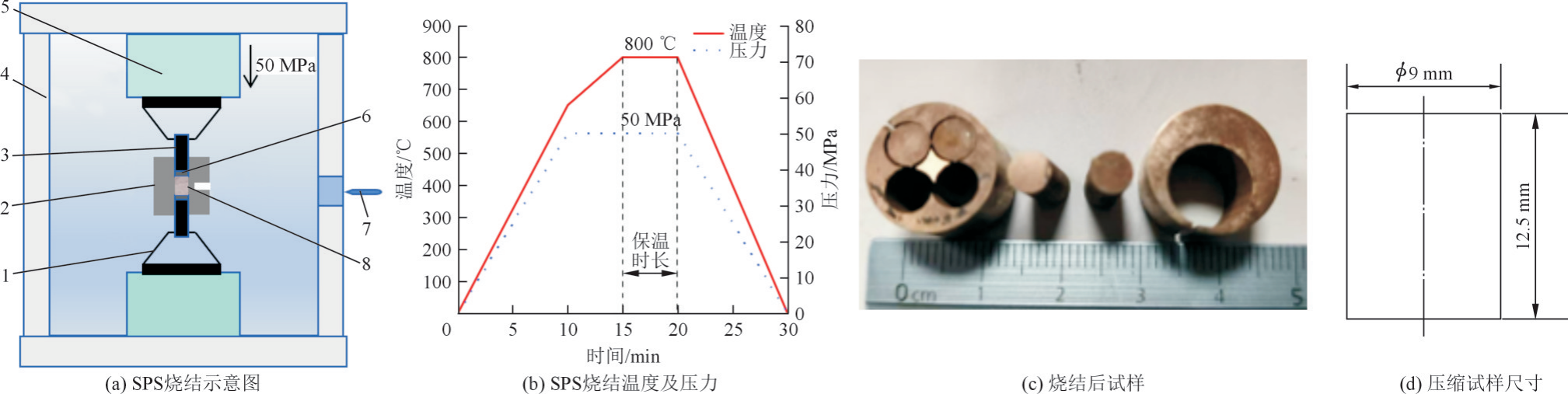 SPS烧结原理及试样示意图