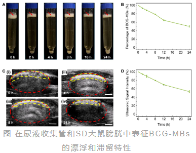 针对这一临床挑战,中山大学研究团队近期开发了一种创新性的药物递送平台——基于浮动空气微气泡的BCG递送系统(BCG-MBs)。该系统成功地将BCG封装于内部充满空气的微气泡中,利用其远低于尿液的密度(平均密度仅509.82 kg/m³),使其能稳定漂浮于尿液之上,即使排尿也能大量滞留于膀胱内,从而实现BCG的长期缓慢释放。