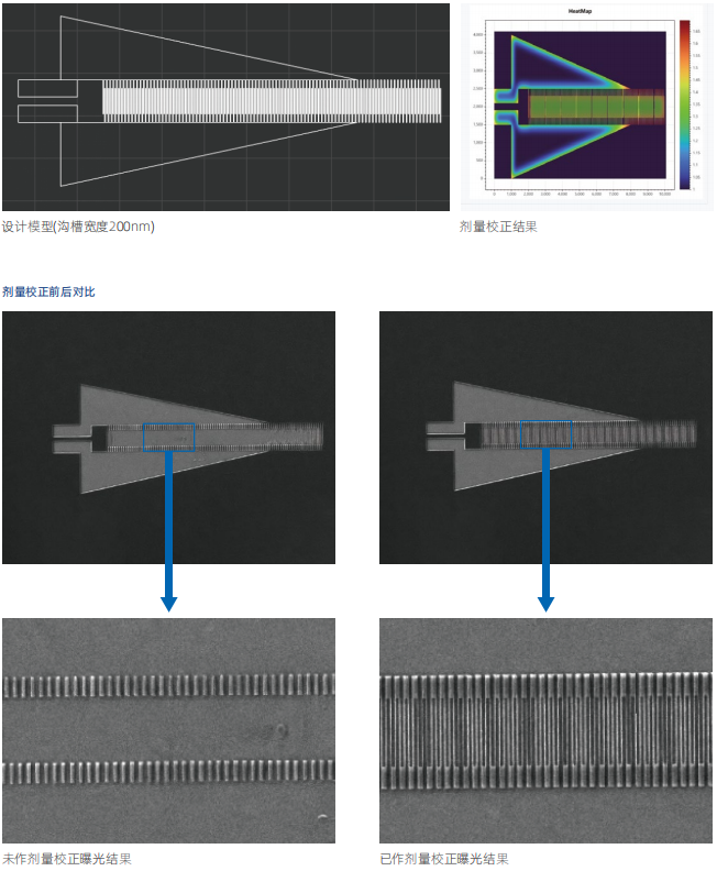 电子束邻近效应校正功能 · 剂量校正效果