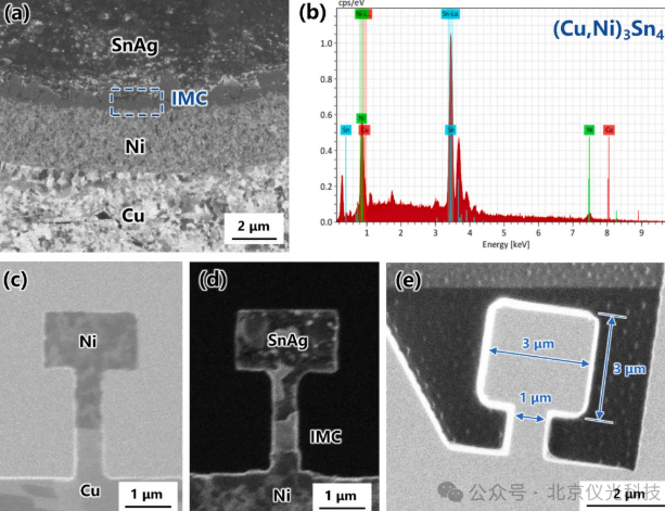 微观分析显示,Ni/SnAg界面处形成了(Cu,Ni)₃Sn₄金属间化合物,其与SnAg焊料边界处存在大量Kirkendall空洞,这正是界面强度显著降低的“罪魁祸首”。