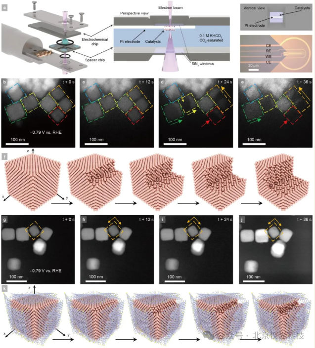 性能优异,但“铠甲”如何让催化剂“长寿”的微观机制是什么?传统表征手段难以在真实的电化学反应环境中进行实时观测。研究团队借助泽攸科技的原位TEM测量系统,首次清晰“直播”了催化剂在苛刻反应条件下的动态变化过程,提供了最直观、最有力的证据。