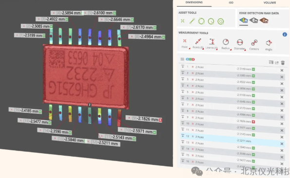 间距狭窄,精度要求高:随着芯片朝着小型化、高密度化狂奔,引脚之间的间隙越来越小,对测量设备的空间分辨率和重复精度提出了近乎苛刻的要求。传统接触式测量工具不仅效率低下,更有刮伤引脚、影响性能的风险。